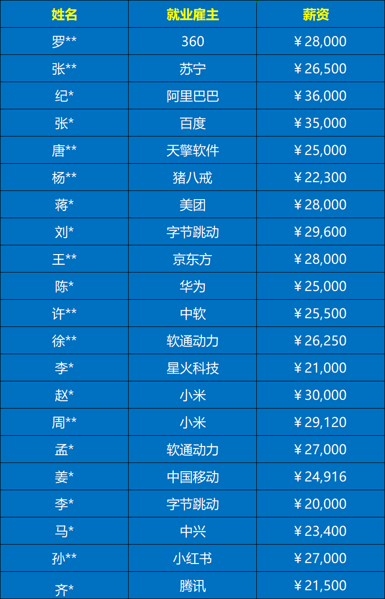 普通企业月薪16~30K;大厂企业月薪20~40K
