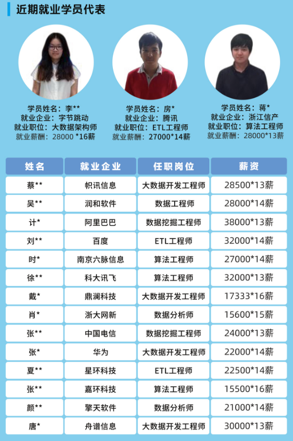 薪资高。培优菁英班课程,学的过程中,可以依次对应企业的大数据采集/应用工程师、大数据ETL/数仓工程师、大数据架构/挖掘/清洗/治理/工程师。且薪资在IT各门类对比中处于上层。